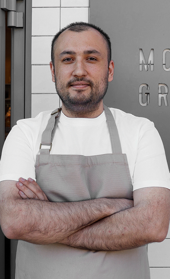 Бахтияр превращает ужинв нарратив: от хрустящих цветков цукини с крабом, где нежный вкус цветков сочетает свежесть морепродуктов, до сибаса с корнеплодами, который воплощает гармонию земли и моря.